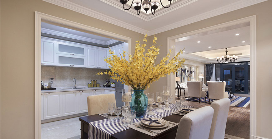 设计师 江叶 面积:180平米 地点:安徽合肥 价格:25万元 性质:四居 风格:美式 空间颜色以白色与米色为基调。在托斯卡纳的艳阳下,一片花朵见证一天生活的奇迹,一片落叶诠释一生追求的完美归属。干净明亮的色彩象征着一种生活态度,生活的真谛不在于奢华的享受,在于生活的舒心和内心的平静,踏海而归时捡回来的贝壳随手放在客厅的茶几上,是对生活热情的回应。蓝色的纯净让每个夜幕来临时都深感内心回归平静的坦然。艳阳下残存的温度是对生命长久的回想与追思。
